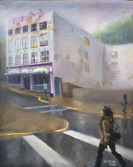 The Gastineau Apartments were sitting vacant when I happened upon them in Juneau. Only three months later, they were town down. My painting is in memorium.