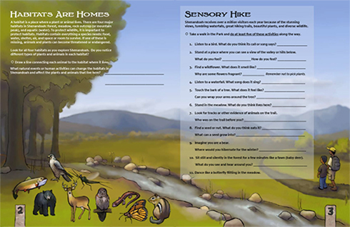Habitats and HikesA page from the Junior Ranger BookMEDIUM: Ink with digital colorSITE: Shenandoah National Park